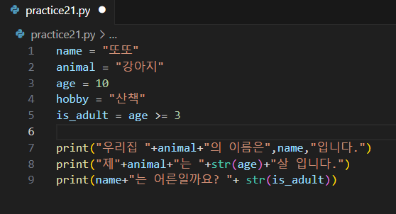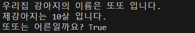 print(name+"는 어른일까요? "+ str(is_adult)) # 새로 추가한 코드 마찬가지로 str로 감싸줬다.