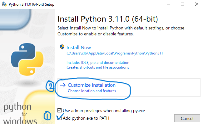 2. Customize installation 을 눌러서 경로를 설정해줍시다.
