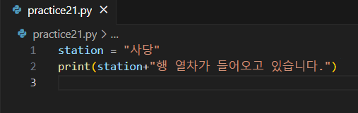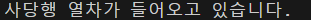 출력하면 사당행 열차가 들어오고 있습니다. 가 잘 출력됩니다.