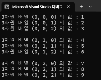printf("3차원 배열 (%d, %d, %d) 의 값 : %d\n", i, j, k,arr4[i][j][k]);
