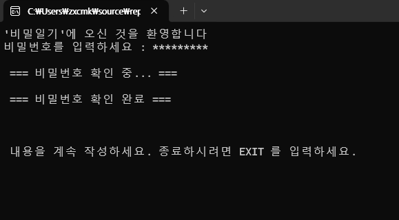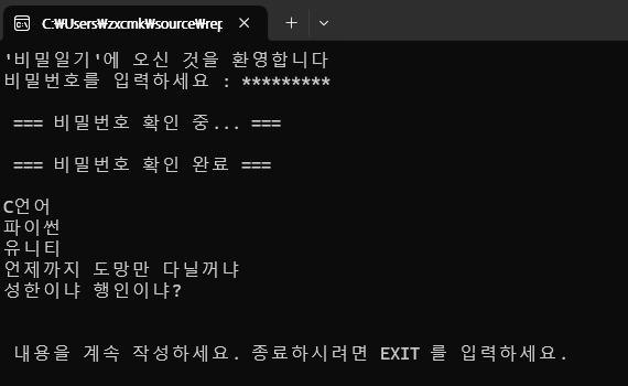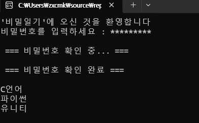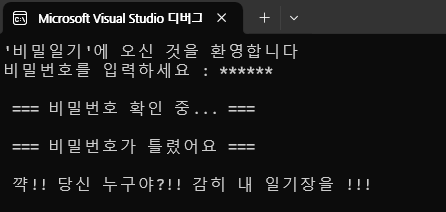 printf("'비밀일기'에 오신 것을 환영합니다\n");