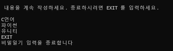 printf("\n\n 내용을 계속 작성하세요. 종료하시려면 EXIT 를 입력하세요.\n\n");