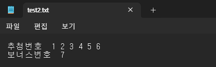 fprintf(file, "%s %d %d %d %d %d %d\n", "추첨번호 ", 1, 2, 3, 4, 5, 6);