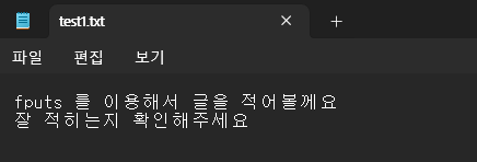 fputs("잘 적히는지 확인해주세요\n", file);
