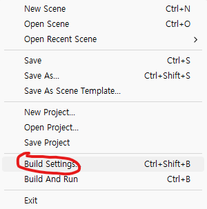 Scene을 불러오려면 꼭 Build Setting에서 추가